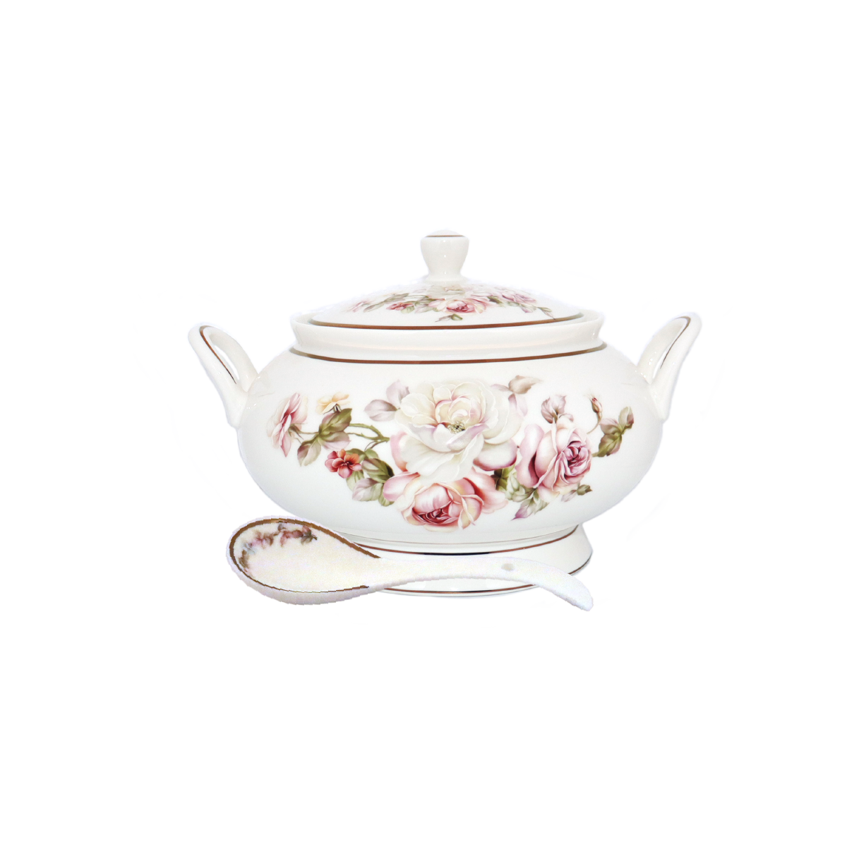 Vantage Fine Porcelain Ivory Rose Soup Tureen with Gold( F48)