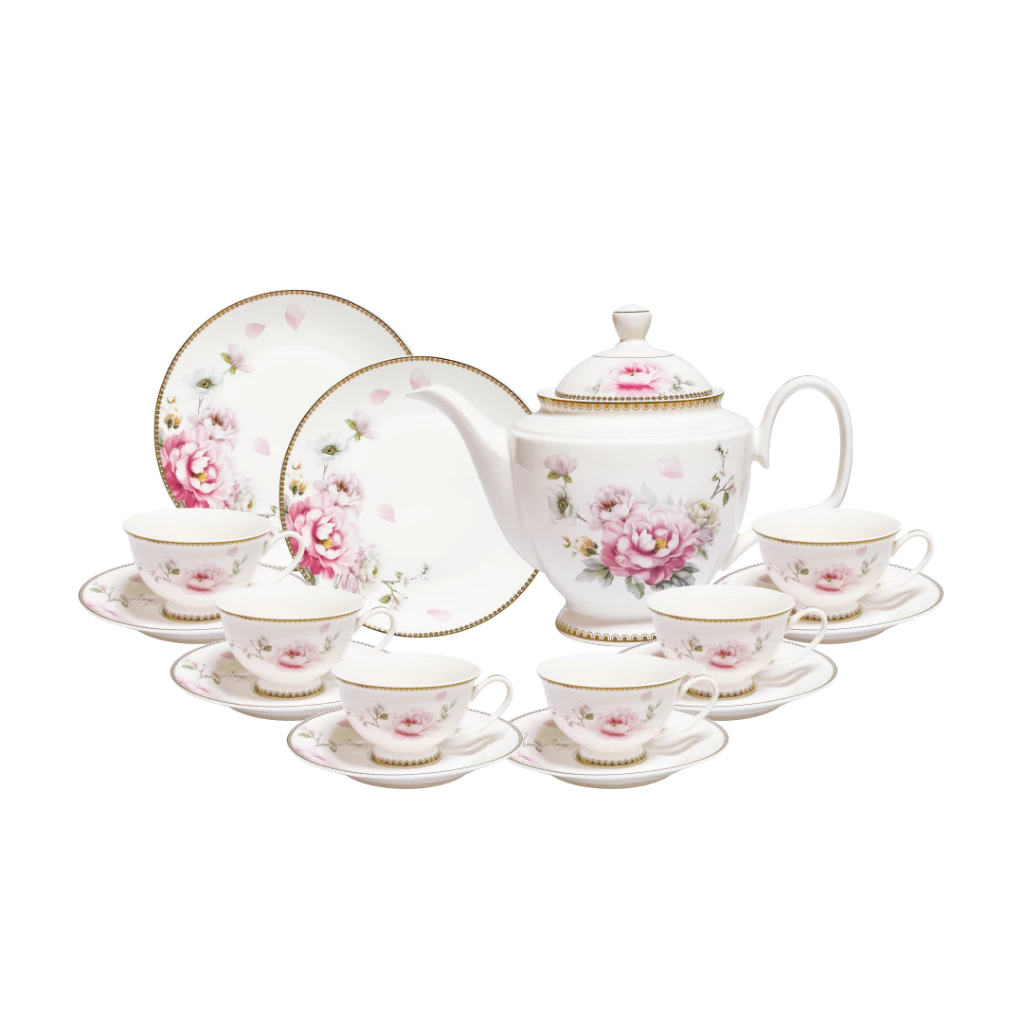 Pink Peach Glory Rose 14Pcs Tea Set (FR8) – Manufacturing Defect-299