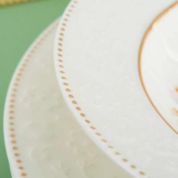 2026-Vantage Fine Porcelain 15pcs PrimRose Embossed Gold Dinner Set